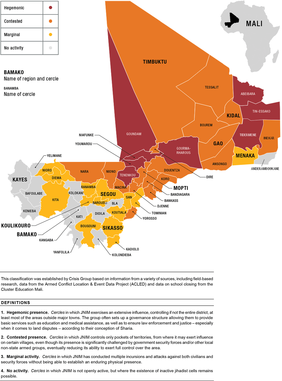 Two villagers discuss their difficulties with United Nations Multidimensional Integrated Stabilization Mission in Mali (MINUSMA) soldiers, near Menaka, Mali, on 25 October 2021. FLORENT VERGNES / AFP Report / Africa 10 December 2021 20+ minutes Mali: Enabling Dialogue with the Jihadist Coalition JNIM Authorities in Mali seem to be considering negotiations with Jamaat Nusratul Islam wal-Muslimin, the country’s largest Islamist insurgency. Pursuing talks will be a tall order, given the stakes and the group’s al-Qaeda connection. Both the government and the militants should begin with incremental steps. Share Facebook Twitter Email Linkedin Whatsapp Save Print Download PDF Full Report Also available in Français Français English Principal Findings What’s new? The Malian government has expressed willingness to explore dialogue with Islamist insurgents, some of whom have sent reciprocal conciliatory signals. Previous talks among communal leaders, militants and militiamen yielded several local ceasefires that eased suffering in rural areas. Yet no one has taken steps to prepare high-level negotiations. Why does it matter? Thousands have died as Mali’s conflict grinds on. Both the army and the jihadists are taking increasingly heavy losses, but neither party appears capable of securing military victory. Ethnic violence is spiralling. Foreign partners are showing signs of exasperation with the country’s interlocking security and political crises. What should be done? The Malian government and those jihadists who have said they will talk should strengthen their commitment to dialogue. Ideally, to this end they would defuse resistance among elites and foreign partners, appoint negotiating teams and possibly even agree on a mediator. Executive Summary Both Mali’s government and the country’s largest jihadist grouping, Jama’at Nusratul Islam wal Muslimin (JNIM), say they want to talk about ending their bloody conflict. Yet neither party has taken steps to make dialogue happen. After eight years of fighting, the government and its external partners lack a convincing military strategy for concluding the war. Talks could allow the government to cut deals with jihadists that would save lives. But officials face major obstacles, not least their own division over the notion of such negotiations. France, Mali’s most important ally, opposes dialogue. JNIM, meanwhile, says foreign forces must withdraw before it will talk, deepening the other side’s reluctance to engage. But with rural militias proliferating and elite squabbles prompting two coups in 2021 to date, the demoralised public is swinging behind dialogue. So as not to rush into talks unprepared, the government and JNIM should first unify their ranks and think through their positions on key issues, particularly the role of Islam in state and society. They should also name negotiation teams and agree upon a mediator. JNIM is a coalition of four jihadist groups formed in 2017 that operates from rural strongholds scattered throughout northern and central Mali. It is an al-Qaeda affiliate, but most of its constituent elements are under Malian command. For a time, JNIM made significant headway in capturing territory, but the conflict appears to have reached an impasse, with both sides inflicting and incurring heavy losses. The coalition nominally seeks to impose its ultra-conservative interpretation of Islam on both state and society. In practice, however, the militants have thus far adopted a largely pragmatic approach, ruling through a system of shadow governance that allows for a degree of local autonomy. They have also agreed to ad hoc ceasefires with self-defence militias. These agreements secured at least a temporary lull in combat in several areas. For years, the [Malian] government nixed the idea of dialogue with militants, but lately it has begun rethinking. For years, the government nixed the idea of dialogue with militants, but lately it has begun rethinking its opposition due to bad news from the front and political instability in the capital. Early in 2020, following an outcry over unprecedented mass killings of civilians and soldiers, then President Ibrahim Boubacar Keïta said he was ready to engage with militants. JNIM responded positively within weeks. The junta that ousted Keïta in a coup a few months later named a civilian prime minister, Moctar Ouane, who spelled out ways to pursue dialogue in the government’s action plan. The coup makers removed Ouane, too, in May 2021, but his successor must still contend with a public that has become dissatisfied with the purely military approach to dealing with insurgents. Foreign partners have grown impatient with Mali’s political turmoil. France, for its part, announced that it will reduce its military footprint in the Sahel and hand over responsibility for the anti-jihadist fight to the European Task Force Takuba. Meanwhile, Malian politicians, activists and religious leaders are bickering over how to resolve the conflict. Talks are by no means guaranteed, and, if they do happen, are unlikely to bring immediate relief to a suffering Malian population. Many politicians, civil society representatives and religious leaders harbour deep reservations. The concerns are widespread, even among Malian officials who have helped shape dialogue policies in recent years. JNIM leaders, while showing an interest in talking, are hard to pin down about what compromises they might accept. France’s rejection of dialogue with JNIM’s top leadership – in the words of French officials, those “responsible for the deaths of thousands of civilians and … Sahelian, European and international soldiers” – poses another challenge. Finally, and most importantly, neither the Malian government nor the jihadists have determined what they want to talk about and how or where such talks could take place. Yet, as it becomes obvious that the conflict has no military solution, the government coul