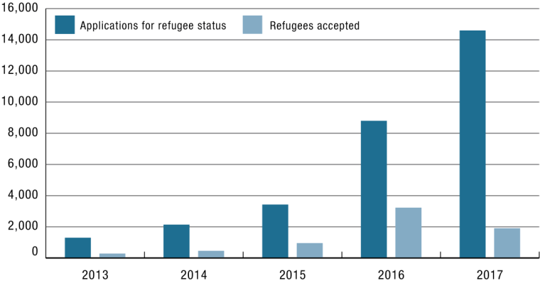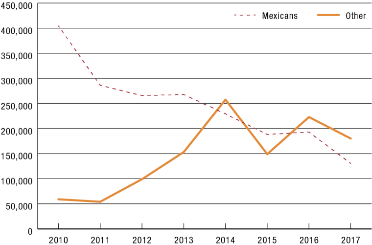 Central American migrants walk along the railroad tracks as they wait to board a train known as "The Beast" to reach the border with the US, in Guadalajara, Jalisco state, Mexico on 3 April 2018. ULISES RUIZ / AFP Report / Latin America & Caribbean 09 May 2018 20+ minutes Mexico’s Southern Border: Security, Violence and Migration in the Trump Era Mexico stops hundreds of thousands of Central Americans fleeing northward to the U.S. Many are deported, and many more are stuck in the country’s south, vulnerable to crime and rising xenophobia. With U.S. and European help, Mexico should work harder to protect migrants and foster economic development. Share Facebook Twitter Email Linkedin Whatsapp Save Print Download PDF Full Report Also available in Español Español English What’s new? Despite U.S. President Donald Trump’s tweets to the contrary, Mexico is vigorously policing its southern border, stemming the northward flow of Central Americans escaping poverty and violence. It is deporting thousands and accepting thousands more as refugees, though many remain in legal limbo. Why does it matter? Central Americans have long contended with abuse on their way north. Today they run a gauntlet of threats from criminals and corrupt officials. If Mexico is not better equipped to handle the influx, the human costs and the risk of conflict will rise. Already xenophobia and violence are increasing across Mexico’s south. What should be done? Mexico should stop using migration policy as a bargaining chip with the U.S., and instead redouble efforts to protect migrants and refugees, fight crime and promote development in the southern states. The U.S. and EU should provide material assistance for refugee processing and protection, and support efforts to reduce poverty and crime in Central America so that fewer people are compelled to flee. Executive Summary The relationship between Mexico and the U.S. is most fraught in the domain where cooperation between the two countries is the closest. At its border with Central America, some 1,500km south of the line where U.S. President Donald Trump wants to build a wall, Mexico effectively acts as an operating arm of U.S. immigration control. It stops hundreds of thousands of Central Americans from travelling north, deporting more of them than the U.S. since 2015, while also granting thousands refugee status. For Mexico, control over its southern border offers some protection from the spasmodic blows of the Trump presidency. But as Central Americans continue to flee poverty and violence at home, Mexico’s buffers are turning into bottlenecks. Xenophobia and criminality make southern Mexico increasingly perilous for refugees and migrants. The Mexican government, with the support of Central American states, the European Union (EU) and Washington itself, should strive to reinforce refugee protection, crime prevention and development in the area. Understaffed and overstretched, the Mexican system for adjudicating asylum cases is close to collapse. Elected in part on a tough anti-immigration stance, President Trump has planted deep uncertainty in the minds of many who might seek to enter the country. After falling sharply in 2017, arrests by the U.S. Border Patrol are again on the rise. Humanitarian workers and migrants themselves report acute anxiety over what lies in wait for those who do get across. For many of those leaving Central America, their final destination is now closer, and often less welcoming. The number of Latin Americans applying for refugee status in Mexico jumped 66 per cent in 2017. Understaffed and overstretched, the Mexican system for adjudicating asylum cases is close to collapse: when two earthquakes struck Mexico in September 2017, the national refugee agency was briefly paralysed. Many applicants, including children, languish in detention centres, awaiting the verdict as to whether they will be granted protection. Moreover, Central American refugees’ escape from violence is far from assured. In 2017, Mexico tallied its highest number of murders since the country’s modern record-keeping began. Homicide rates in the southern states of Oaxaca, Quintana Roo and Veracruz are above the national average and rising. Kidnappings have soared across the south since 2015. Not only are the border states now the main conduit for cocaine trafficked from Colombia’s Pacific coast, but violence is fuelled by the fragmentation of the once dominant Zetas and the Sinaloa Cartel, combined with the rise of the Jalisco New Generation Cartel and the spread to southern Mexico of Central American street gangs, notably the Mara Salvatrucha (MS-13). The proliferation of cartels and gangs has intensified turf battles over protection rackets. Long the victims of crime while travelling north, Central Americans must now run an extended gauntlet of criminal organisations ready to kidnap, physically and sexually abuse or kill them. Gangs have even staged raids on migrant shelters. Yet, in many border towns, locals perceive Central Americans themselves as responsible for the rise in crime, prompting a backlash, including calls for southern Mexico to build a wall of its own. Refugees and migrants face increasing discrimination and are often trapped between erratic state institutions, predatory criminals and alarmed locals. Mexico is entitled to secure its borders and manage migration flows to ensure refugees’, migrants’ and host communities’ lives and well-being are not endangered. But the realities of its southern frontier impede effective and judicious migration management. The long and porous border, unceasing flight from Central America, and the presence of potent trafficking groups make border control fitful and ineffective. Combined civil and military operations to seal the border have not halted the flows, and the coercive measures Mexico relies upon appear not to identify adequately those in need of protection, or ensure those in transit are free from 